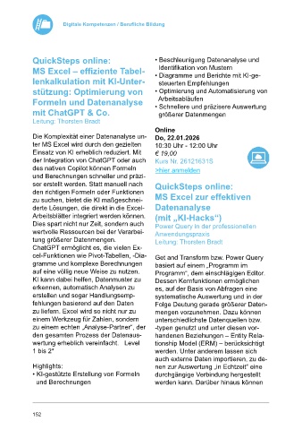 der Integration von ChatGPT oder auch Kurs Nr. 26121631S • Import diverser Datenquellen mit Be- schnitte, Zeitachsen sowie mittlerweile Schulabschlüsse & Zertifikate