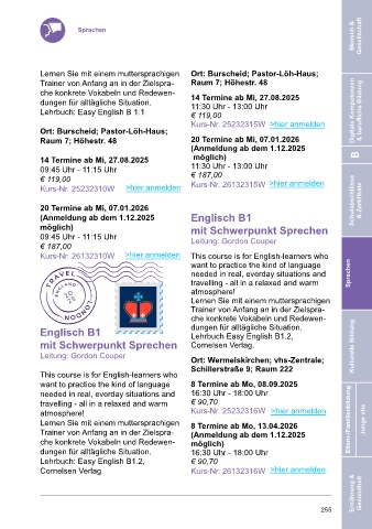 Englisch B1 Englisch B1 Lernen Sie mit einem muttersprachigen Ort: Burscheid; Pastor-Löh-Haus;