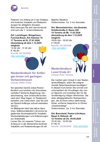 Sie sprechen bereits etwas Nieder- Ort: Leichlingen; Bürgerhaus; (Anmeldung ab dem 1.12.2025