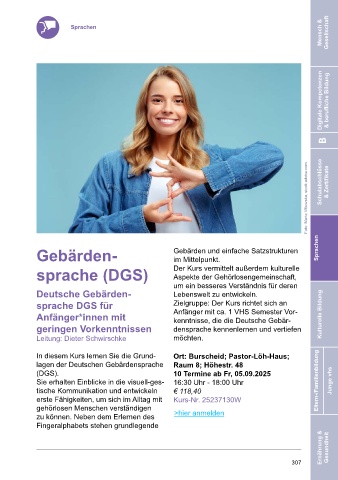 sprache (DGS) Der Kurs vermittelt außerdem kulturelle