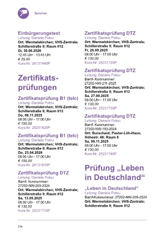 prüfungen Ort: Wermelskirchen; VHS-Zentrale; ¬ 25,00
