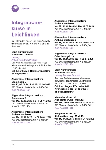 von Fr, 05.09.2025 bis Fr, 10.10.2025 Ort: Leichlingen; Pfarrheim Kath. Integrationskurs mit von Do, 18.12.2025 bis Fr, 06.02.2026