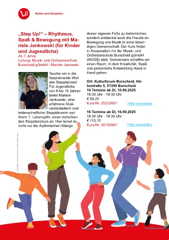 des Stepptanzes! Ort: Kulturforum Burscheid, Hö- erleben Sie, wie rende Welt der