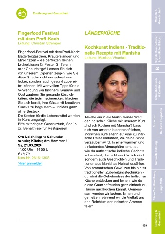 ne vegetarische Bowls kochen, anrich- ¬ 29,40 Bitte mitbringen: Geschirrtuch, Schür- der indischen Küche mit unserem Kurs Sprachen Deutsch Integration