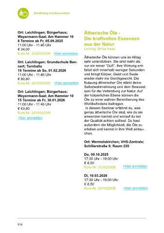 Ort: Leichlingen; Bürgerhaus; Ätherische Öle - Ätherische Öle - Ort: Wermelskirchen; VHS-Zentrale;
