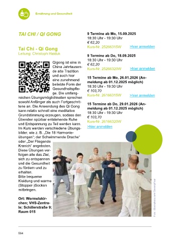 TAI CHI / QI GONG 9 Termine ab Mo, 15.09.2025 Qi Gong - Qi Gong der