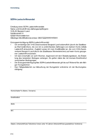 • Ich ermächtige den VHS-Zweckverband Bergisch Land widerru昀氀ich (durch die Stadtkas-