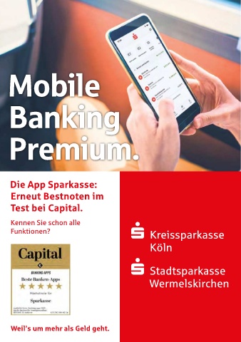 Mobile Banking Premium. Die App Sparkasse: Erneut Bestnoten im Test bei Capital. Kennen Sie schon alle Funktionen? S- Kreissparkasse Köln S- Stadtsparkasse Wermelskirchen ‚ Weil s um mehr als Geld geht.